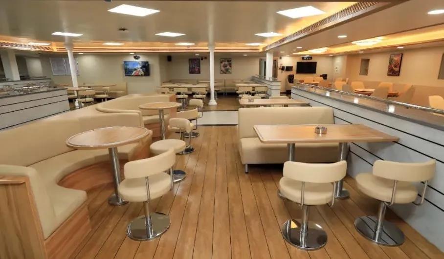 船上還配備了餐廳、健身房、理發(fā)室、圖書室、洗衣房、醫(yī)療室等生活設(shè)施。“海巡09”一次航行就要花上兩個月以上的時(shí)間,這些設(shè)施為船上的人員創(chuàng)造了良好的生活環(huán)境。
