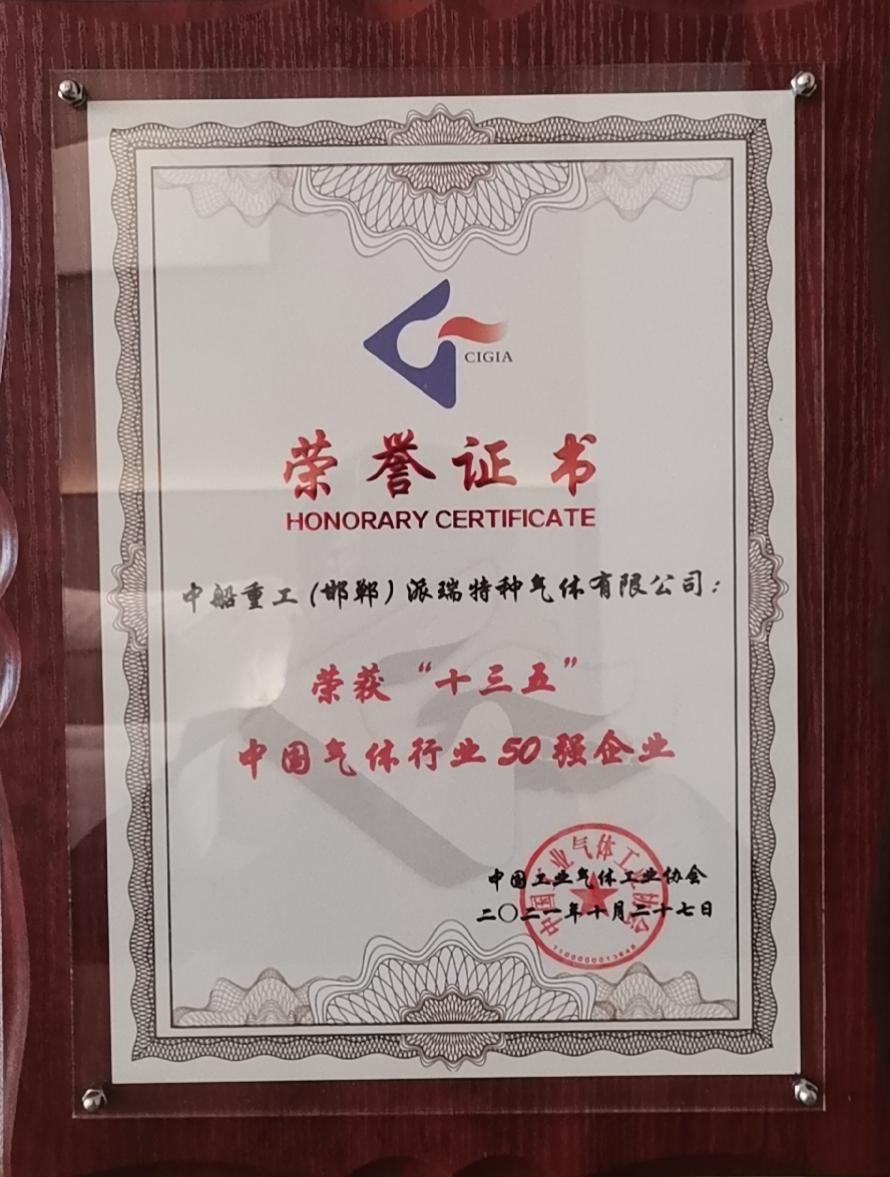 中國船舶集團(tuán)旗下七一八所所屬派瑞特氣公司,近日榮獲中國工業(yè)氣體工業(yè)協(xié)會評選的“十三五”中國氣體行業(yè)分行業(yè)電子氣體10強(qiáng)、“十三五”中國氣體行業(yè)50強(qiáng)企業(yè)榮譽(yù)稱號,以及2021年氣體行業(yè)專利獎金獎。