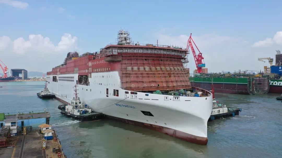 近日,廣船國際為意大利Onorato航運集團旗下Moby Line航運公司建造的2500客/3800米車道豪華客滾船首制船實現(xiàn)出塢,建成交付后將成為全球最大的豪華客滾船。