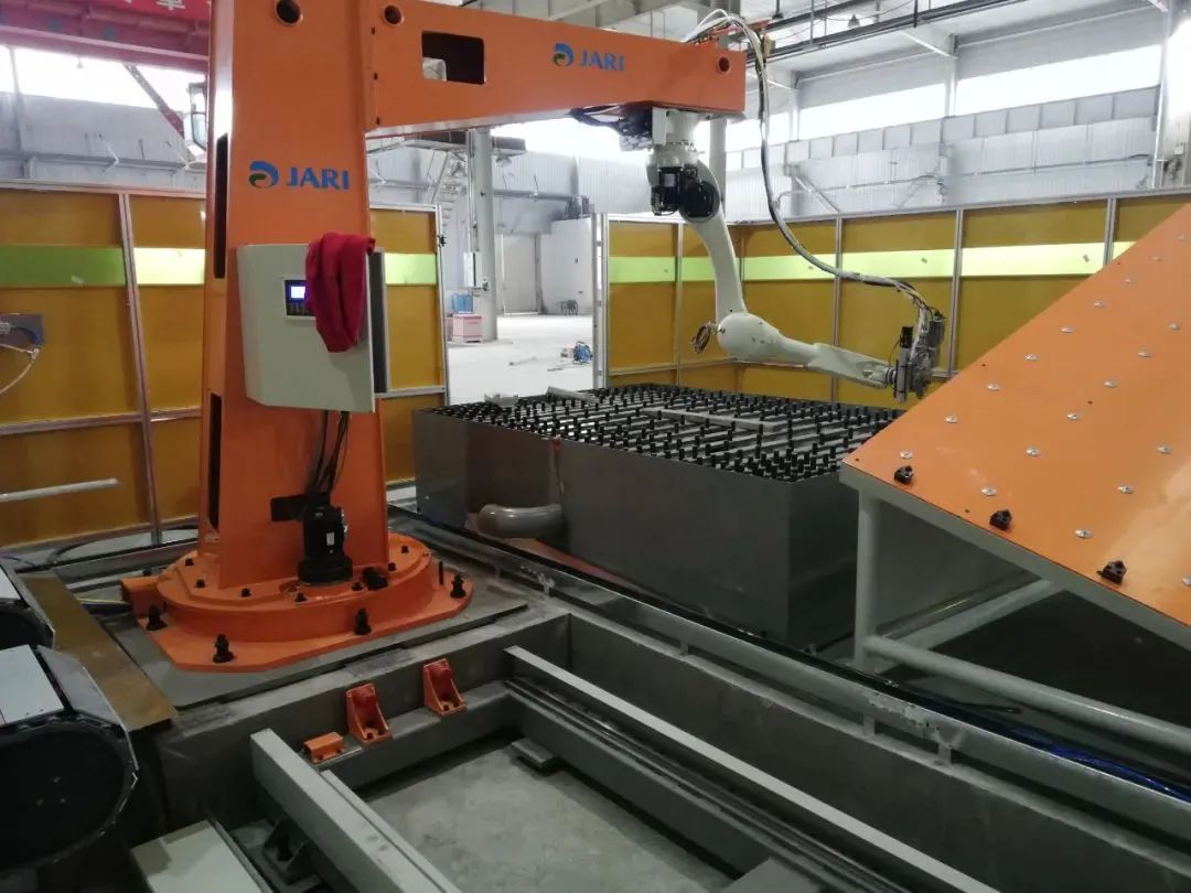 該生產(chǎn)線基于機器人離線編程與自動激光切割技術(shù),輔助采用搬運機器人系統(tǒng)、自動沖床及自動涂油系統(tǒng)等自動化手段,實現(xiàn)了多種罐體封頭的定位、物流轉(zhuǎn)運、沖壓成型、裁切、碼垛等自動化生產(chǎn)作業(yè),成功代替了客戶原有的半自動成型、手動切割等操作模式,罐體封頭的生產(chǎn)效率提高了75%,生產(chǎn)質(zhì)量和產(chǎn)品精度大幅提升,在罐體封頭全自動生產(chǎn)領域獲得新突破。