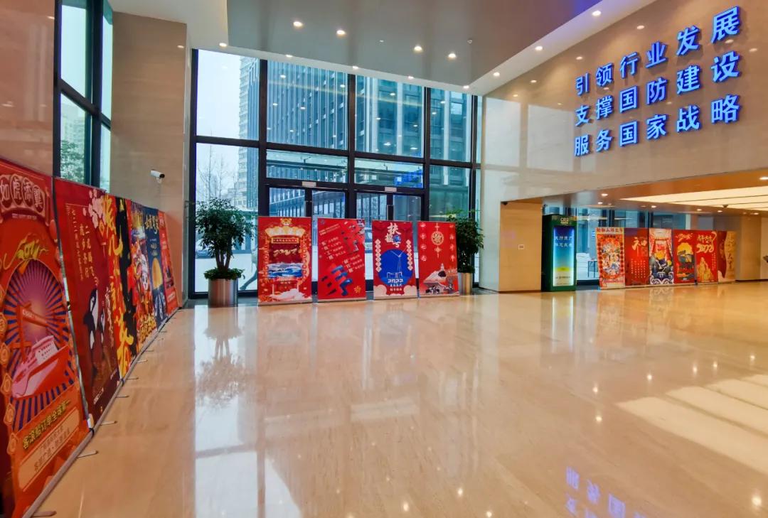 節(jié)日的煙花詮釋喜慶,大紅的燈籠點亮祝福!黃旭華院士作為七一九所典型人物代表,認真注視著他為之奉獻一生的艇,也反映了這條戰(zhàn)線上科技工作者們“團結、求實、創(chuàng)新、奉獻”的工作作風?!盀榫粨?鵬摶九天”暗藏“一九”二字,反映出七一九所肩負的責任之大,使命之重,表達了軍工人將船舶事業(yè)做大做強的決心。