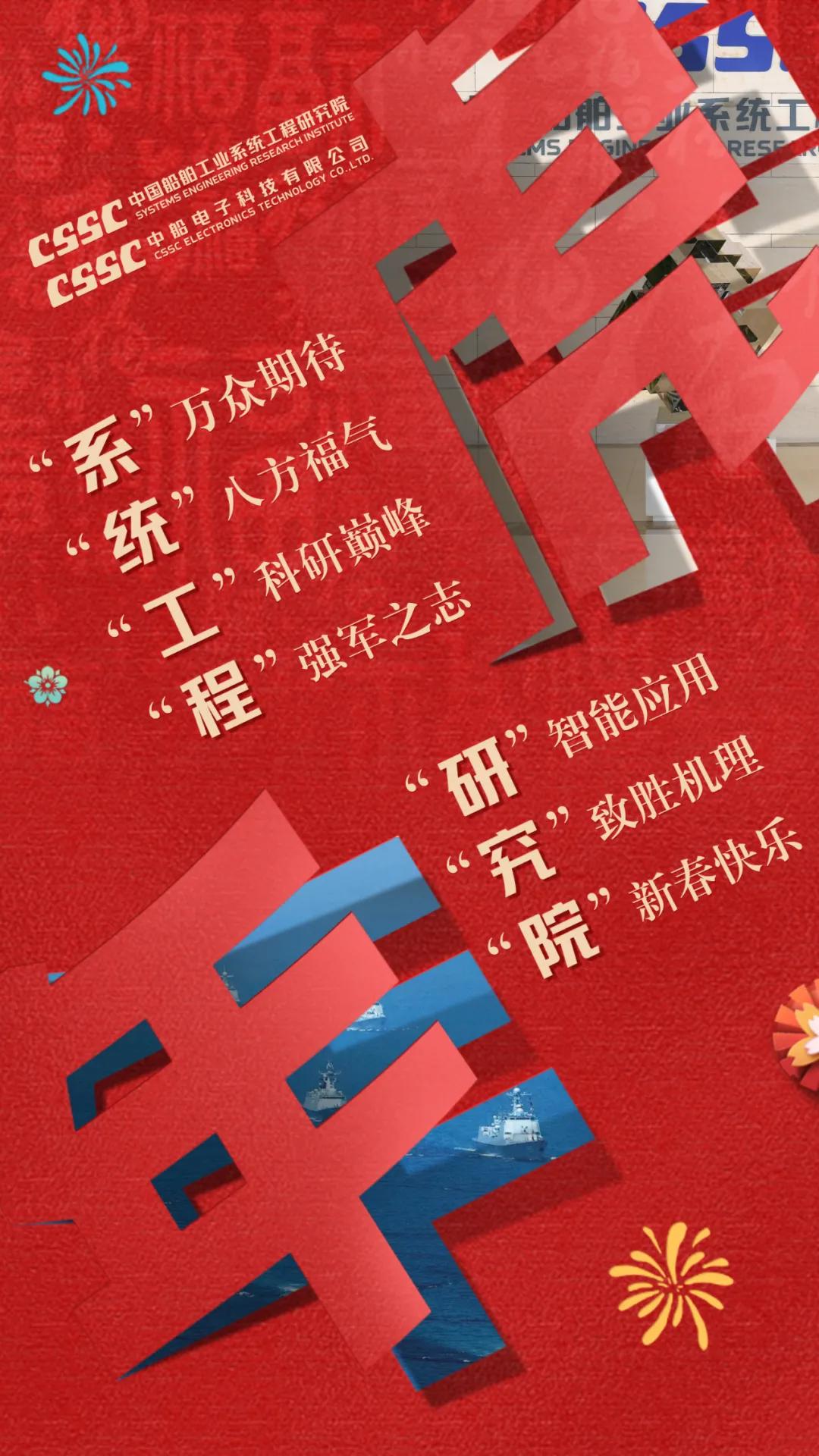 以中國紅為主色調(diào),運用傳統(tǒng)剪紙手法結合鏤空設計,寓意揭開虎年新篇章,映入眼簾的艦艇乘風破浪、浩浩蕩蕩,傳遞系統(tǒng)工程研究院/中船電科建設強大海軍的信心和決心!