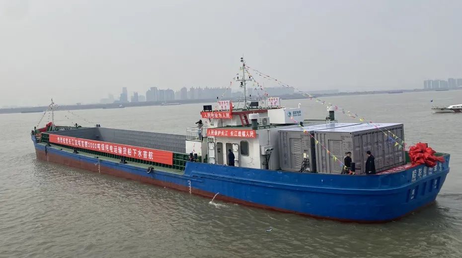 “船聯(lián)1號(hào)”由國(guó)網(wǎng)江蘇省電力有限公司聯(lián)合相關(guān)部門和企業(yè)共同打造,是長(zhǎng)江流域最大載重噸位的電動(dòng)貨船,將電能作為整艘船的唯一能源,實(shí)現(xiàn)零排放、低噪音、無(wú)污染。