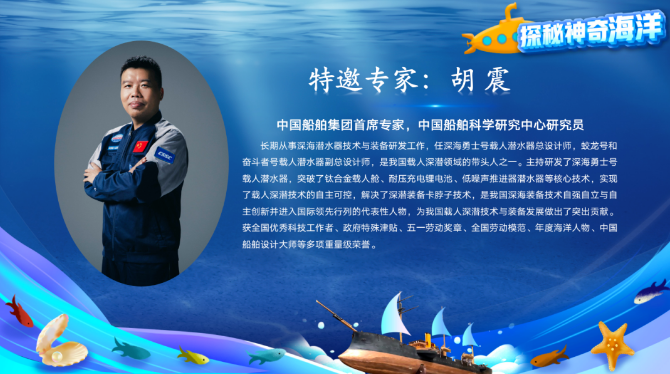 3月22日,由山東省大中小學(xué)海洋文化教育研究指導(dǎo)中心、中國(guó)海洋大學(xué)等單位聯(lián)合主辦的“探秘神奇海洋”云端科普活動(dòng)的重點(diǎn)板塊之一——“深海探索”直播正式開(kāi)播。中國(guó)船舶集團(tuán)首席專(zhuān)家、中國(guó)船舶集團(tuán)七〇二所研究員胡震在直播間為廣大觀(guān)眾答疑解惑,近6萬(wàn)名觀(guān)眾觀(guān)看直播并提出了各類(lèi)關(guān)于深海的問(wèn)題。