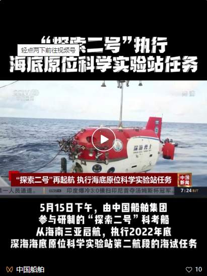 5月15日下午,我國(guó)“探索二號(hào)”科考船從海南三亞啟航,執(zhí)行2022年度深海海底原位科學(xué)實(shí)驗(yàn)站第二航段的海試任務(wù)。