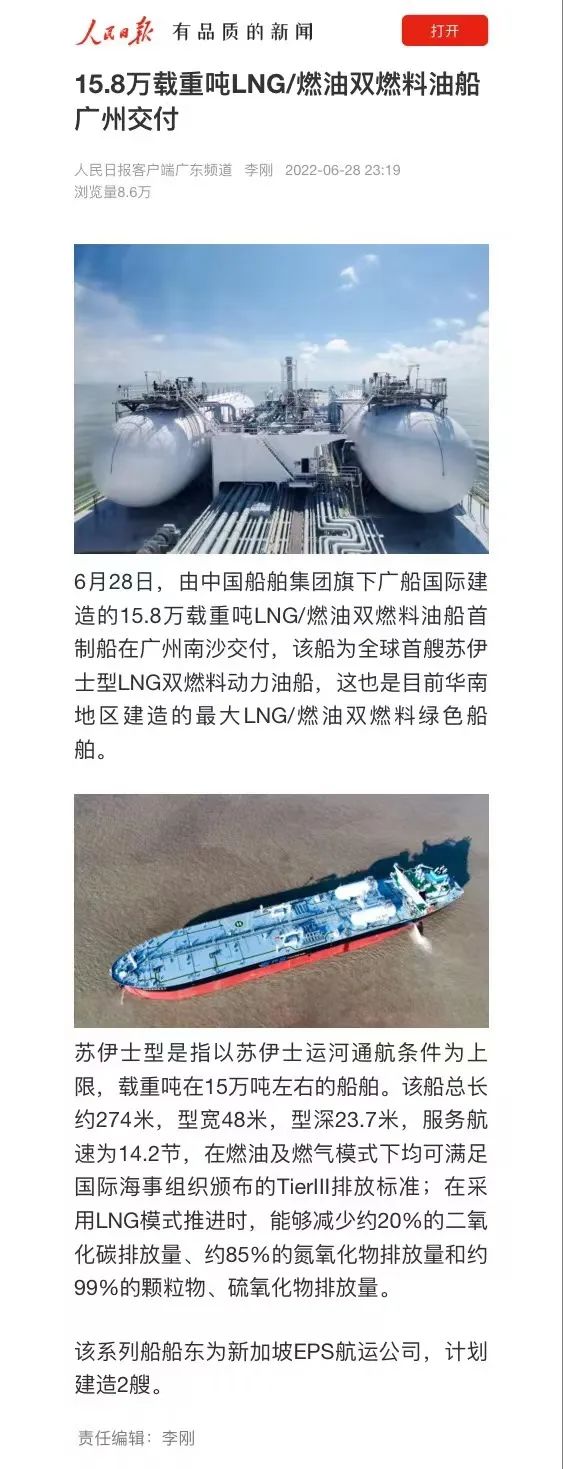 2022年5月30日交付,標志著廣船國際成功攻克LNG雙燃料動力船舶的研發(fā)和建造技術,成為了華南地區(qū)首家自主研發(fā)和建造LNG雙燃料成品油船的船企。