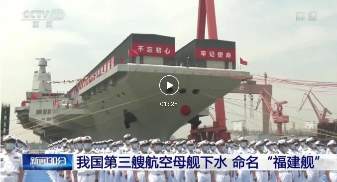 我國(guó)第三艘航空母艦下水命名儀式