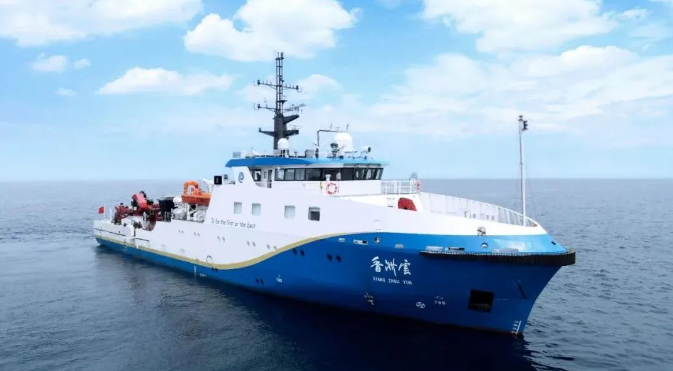 “香洲云”船總長56.9米,功能全面、系統(tǒng)復(fù)雜,是七〇一所所屬武船院為南方海洋實(shí)驗(yàn)室量身打造的一艘智能型綜合科考和試驗(yàn)保障船,集智能航行、遠(yuǎn)程控制、智能集成平臺(tái)和智能能效于一體,可從事海洋地質(zhì)、地球物理、生物化學(xué)等科學(xué)研究工作。該船配有中水多波束、淺地層剖面儀等調(diào)查系統(tǒng)和2000米鋼纜絞車、艏艉部液壓吊等作業(yè)支持系統(tǒng),設(shè)有氣象實(shí)驗(yàn)室、生化實(shí)驗(yàn)室等專業(yè)實(shí)驗(yàn)室。