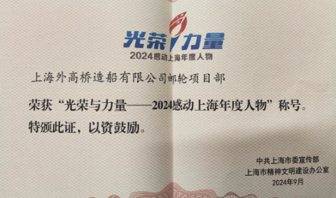 “光榮與力量——2024感動(dòng)上海年度人物推選活動(dòng)”獲獎(jiǎng)名單日前揭曉。中國船舶集團(tuán)外高橋造船郵輪項(xiàng)目部獲評(píng)“2024感動(dòng)上海年度人物”。本次活動(dòng)以2023年8月至2024年7月中,上海市涌現(xiàn)的事跡突出、精神可嘉、社會(huì)認(rèn)可的模范人物和先進(jìn)集體為推選對(duì)象,通過175萬市民網(wǎng)絡(luò)投票和專家評(píng)審?fù)七x出先進(jìn)典型。