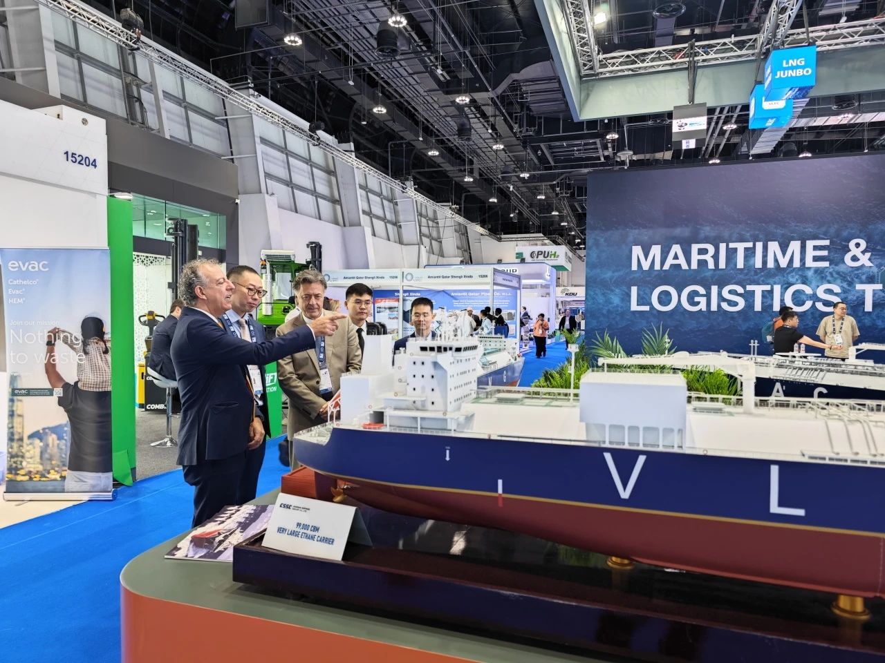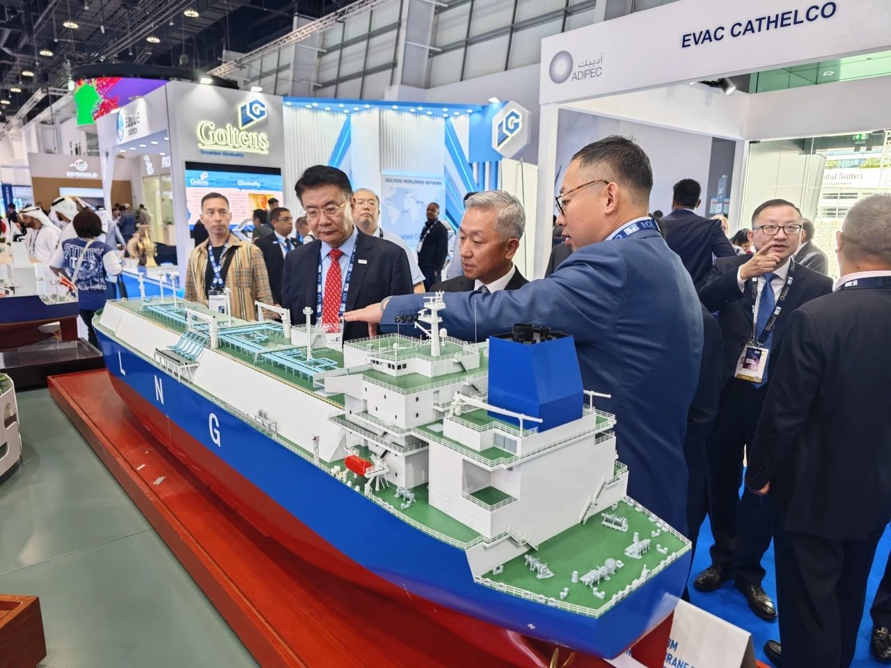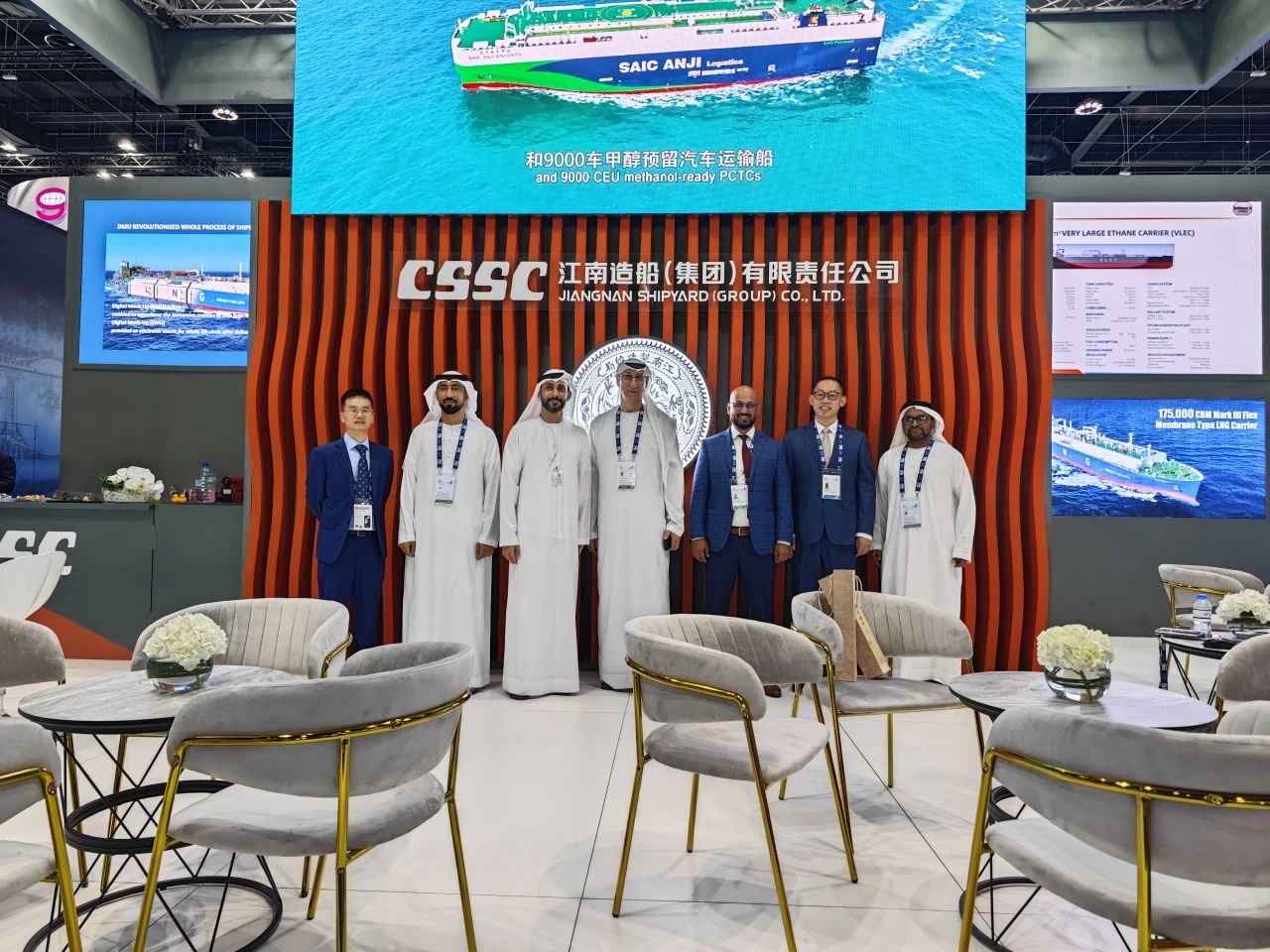 在此次展會(huì)上,江南造船展出了自主研發(fā)設(shè)計(jì)的17.5萬(wàn)立方米液化天然氣(LNG)運(yùn)輸船、目前世界上最大艙容的99000立方米超大型乙烷運(yùn)輸船(VLEC)以及93000立方米超大型液氨運(yùn)輸船(VLAC)等船型,憑借自身優(yōu)勢(shì)及特色展臺(tái)布置吸引了眾多油氣公司、船東、船級(jí)社、中間商、船廠、供應(yīng)商等駐足觀看,同時(shí)也與其進(jìn)行了廣泛和深入的交流。值得一提的是,中國(guó)駐阿聯(lián)酋大使一行也到訪江南造船展臺(tái),詳細(xì)詢問(wèn)江南造船的產(chǎn)品特點(diǎn)、技術(shù)和建造優(yōu)勢(shì)。