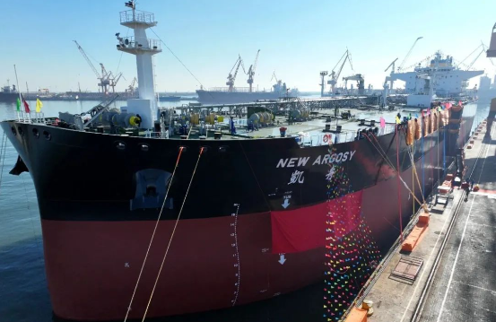 12月9日,中國(guó)船舶集團(tuán)所屬中國(guó)重工大連造船為招商輪船建造的11.5萬噸原油船“凱舟”號(hào)命名交付。這是大連造船山船重工今年交付的第15艘船舶,標(biāo)志著山船重工超額完成全年交船目標(biāo)任務(wù)。