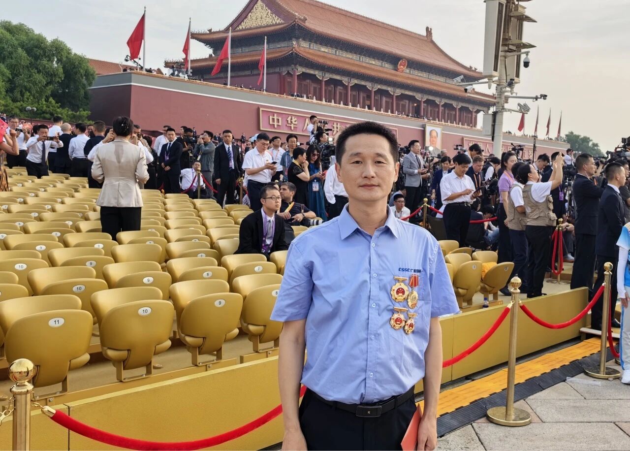 當(dāng)雄壯的《義勇軍進(jìn)行曲》奏響,五星紅旗冉冉升起,我情不自禁地起身肅立,與現(xiàn)場(chǎng)所有群眾代表一同高唱國(guó)歌。這一刻,跨越時(shí)空的民族記憶被瞬間激活,80年前先輩們?yōu)槊褡宕嫱鲈⊙獖^戰(zhàn)的壯闊畫卷仿佛在眼前重現(xiàn)。在閱兵分列式中看到了我們中船集團(tuán)研制的8型整裝裝備震撼出場(chǎng),接受黨和人民的檢閱,倍感榮光,背后是我們中船人的不懈努力和創(chuàng)新精神。