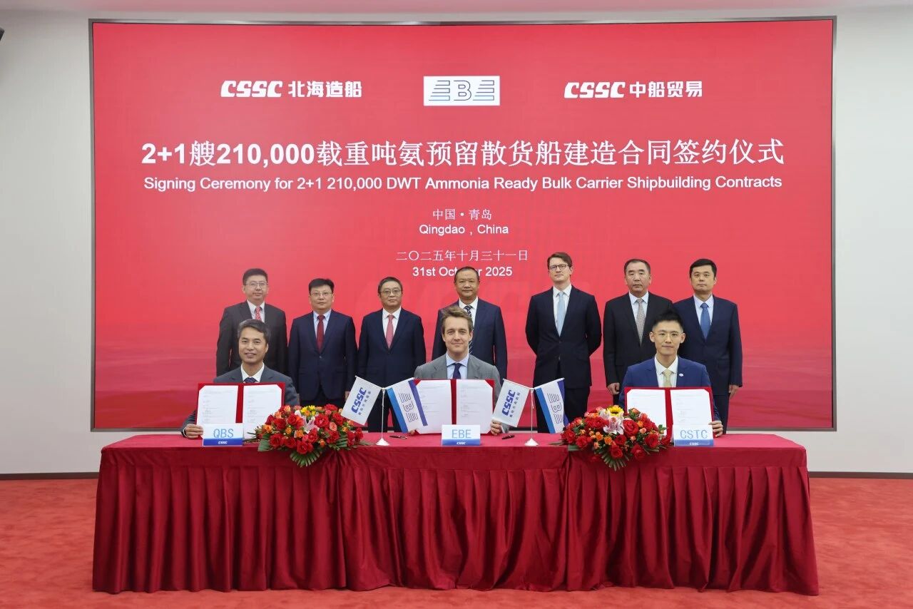 日前,中國船舶集團(tuán)有限公司旗下北海造船聯(lián)合中船貿(mào)易,與比利時航運(yùn)公司EBE成功簽署2+1艘21萬噸氨預(yù)留散貨船建造合同。此次合作是EBE公司首次在中國下單造船,體現(xiàn)了國際市場對北海造船建造實(shí)力的高度認(rèn)可。