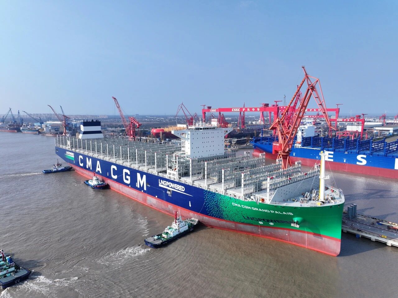 3月17日,中船集團旗下滬東中華建造的24000TEU液化天然氣(LNG)雙燃料動力集裝箱船“達飛 巴黎大皇宮”號,提前7個半月命名交付。該船是滬東中華為法國達飛集團建造的第20艘大型集裝箱船,為中法兩國在綠色航運與高端制造領(lǐng)域的深度合作增添新的典范。