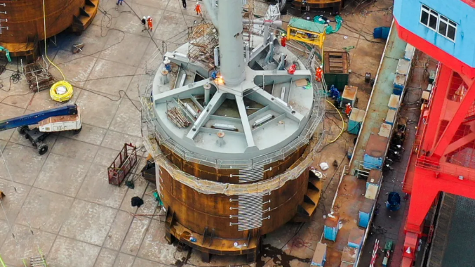 7月31日,廣船國(guó)際建造的我國(guó)第一臺(tái)吸力筒導(dǎo)管架風(fēng)機(jī)基礎(chǔ),在廣州南沙成功發(fā)運(yùn)。吸力筒導(dǎo)管架是海上風(fēng)電場(chǎng)的基礎(chǔ)設(shè)備,這次交付的吸力筒導(dǎo)管架總高63米,足有20層樓的高度,總重量約為1560噸,相當(dāng)于15輛重型卡車(chē)滿載的重量,由3個(gè)直徑約為13米、高約11米的吸力筒和高52米的上部導(dǎo)管架組成。