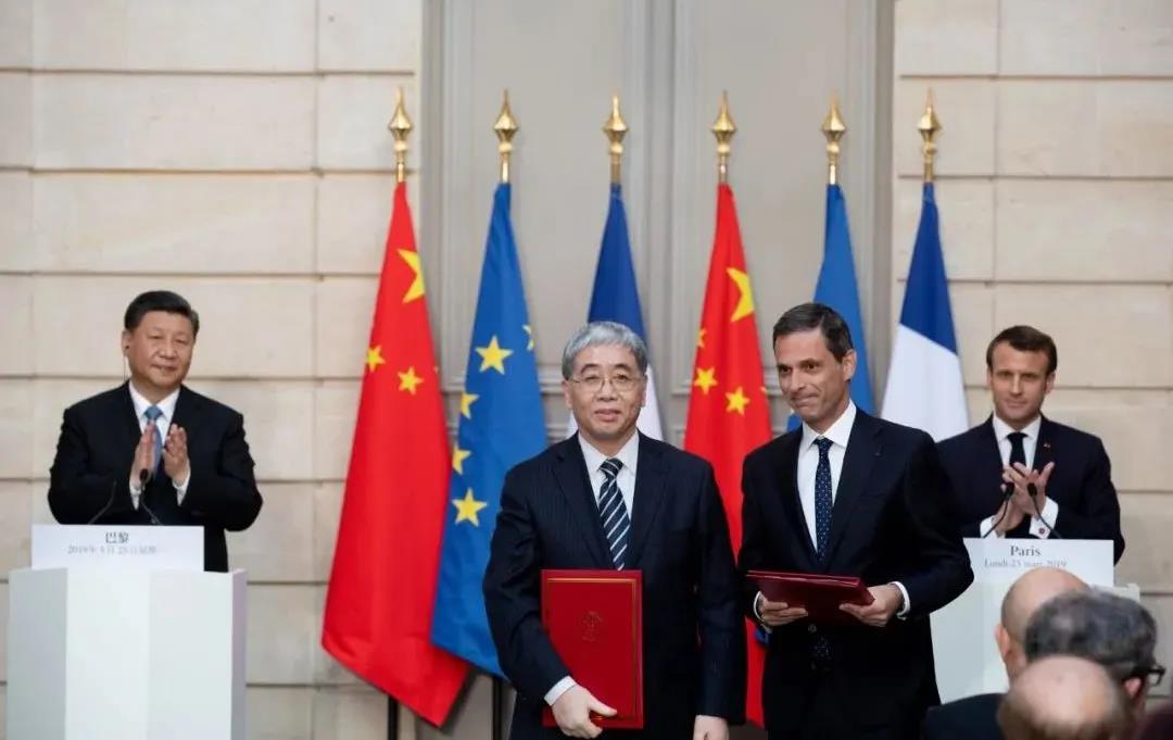 2019年3月,在中法建交55周年的背景下,兩國(guó)元首見證了中國(guó)船舶集團(tuán)董事長(zhǎng)雷凡培、達(dá)飛集團(tuán)董事長(zhǎng)兼首席執(zhí)行官魯?shù)婪颉に_德互相交換戰(zhàn)略合作框架協(xié)議暨5艘雙燃料動(dòng)力、5艘常規(guī)動(dòng)力共10艘15000TEU超大型集裝箱船建造合同。