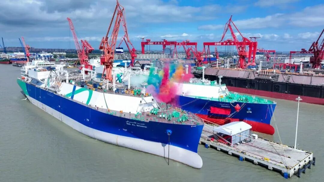10月17日,中國船舶集團(tuán)有限公司旗下滬東中華為卡塔爾能源項(xiàng)目建造的17.4萬立方米液化天然氣(LNG)運(yùn)輸船“米赫澤姆”號和“東沙尼”號同日命名。這標(biāo)志該公司深入貫徹落實(shí)中船集團(tuán)“沖刺四季度”工作取得重要成果,在一周內(nèi)完成2船交付、2船命名、3船出塢、3船入塢,交出LNG運(yùn)輸船產(chǎn)能倍增優(yōu)異答卷。