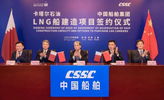 4月22日,中國船舶集團(tuán)與卡塔爾石油公司簽署“中國船舶—卡塔爾石油液化天然氣(LNG)船建造項(xiàng)目”協(xié)議,所涉訂單總金額超過200億元人民幣。
