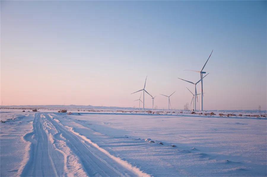 新疆國(guó)華景峽風(fēng)電場(chǎng)冬日景色