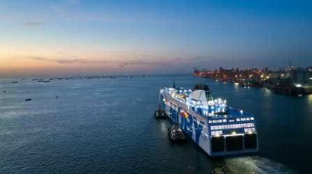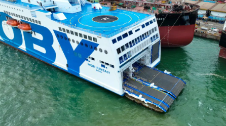 該船船東為“一帶一路”沿線國家意大利的MOBY Line航運公司,項目于2019年6月簽署建造合同,共計劃建造2艘。