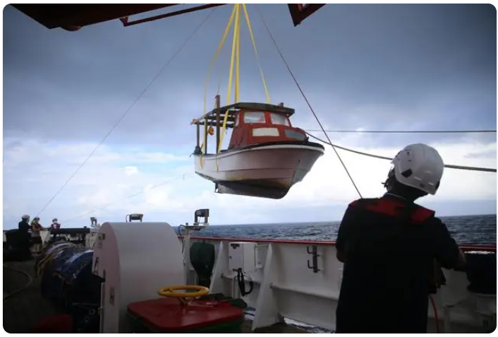 當(dāng)天海況算不上好,一個(gè)氣旋剛過(guò)境,風(fēng)浪洶涌湍急。剛出海沒(méi)多久,凱爾森就感覺(jué)船速持續(xù)減慢,身后引擎聲一點(diǎn)點(diǎn)微弱下去,最后小船只能任憑風(fēng)浪擺布。