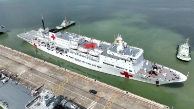 “絲路方舟”號(hào)醫(yī)院船羅吉星介紹:“作為一艘醫(yī)院船,它具備靈活的機(jī)動(dòng)能力,能夠在災(zāi)害發(fā)生第一時(shí)間迅速抵達(dá)災(zāi)害地區(qū),提供醫(yī)療援助服務(wù),還具備多種換乘能力和轉(zhuǎn)移手段,在不具備靠泊條件的災(zāi)害地區(qū)可以通過直升機(jī)和救護(hù)艇,將醫(yī)護(hù)人員和醫(yī)療物資轉(zhuǎn)運(yùn)上岸,或者通過同樣的方式將我們傷病員轉(zhuǎn)運(yùn)至醫(yī)院船進(jìn)行醫(yī)療救治。