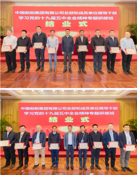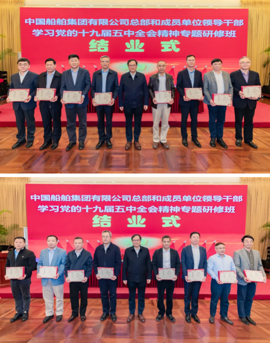 4月23日,中國船舶集團(tuán)有限公司總部和成員單位領(lǐng)導(dǎo)干部學(xué)習(xí)黨的十九屆五中全會(huì)精神和黨史學(xué)習(xí)教育專題研修班圓滿結(jié)業(yè)。培訓(xùn)期間,中國船舶集團(tuán)黨組書記、董事長雷凡培以《深入貫徹落實(shí)習(xí)近平總書記重要指示批示精神 努力加快建設(shè)世界一流船舶集團(tuán)》為題給全體學(xué)員們講授了第一課,中國船舶集團(tuán)黨組副書記、總經(jīng)理?xiàng)罱鸪?,黨組成員、副總經(jīng)理孫偉、盛紀(jì)綱以及相關(guān)部門負(fù)責(zé)人先后出席各期結(jié)業(yè)式并聽取了學(xué)員們的學(xué)習(xí)匯報(bào)。