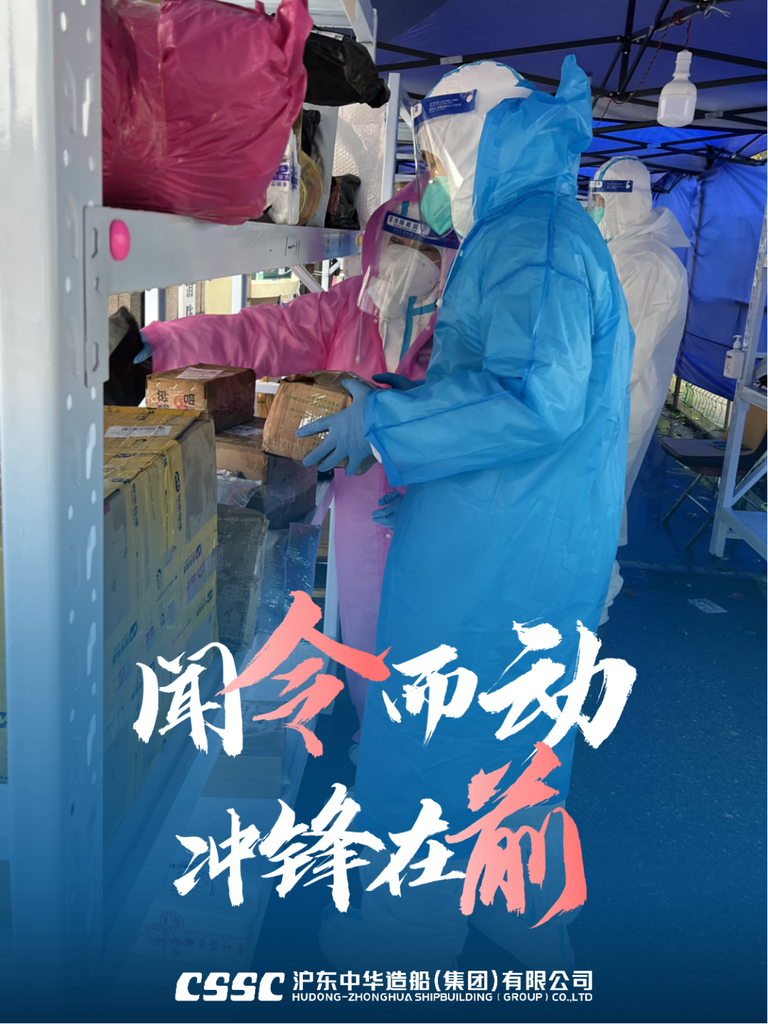面對(duì)當(dāng)前疫情防控嚴(yán)峻形勢(shì),中國(guó)船舶集團(tuán)旗下滬東中華各級(jí)黨組織堅(jiān)決貫徹習(xí)近平總書(shū)記重要講話精神和黨中央決策部署,積極響應(yīng)集團(tuán)公司黨組專項(xiàng)工作要求與上海市委號(hào)召,組織落實(shí)黨員“雙報(bào)到”,迅速集結(jié)廣大黨員干部職工下沉一線,全面參與社區(qū)防疫工作,聽(tīng)從指揮,盡銳出戰(zhàn),讓“黨旗紅”和“船廠藍(lán)”交相輝映,以實(shí)際行動(dòng)踐行軍工央企使命擔(dān)當(dāng)。