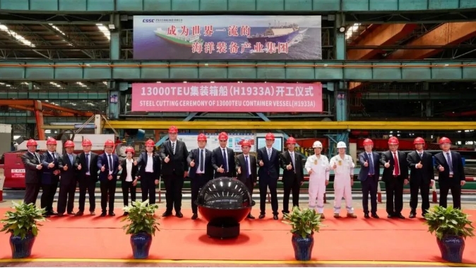 △太平船務(wù)項(xiàng)目13000TEU雙燃料集裝箱船H1933A船開工