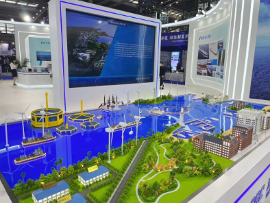 # 10萬(wàn)噸級(jí)大型深遠(yuǎn)海養(yǎng)殖工船、2000噸自升自航式風(fēng)電安裝平臺(tái)、耕海一號(hào)二期工程等模型以及“藍(lán)色海洋經(jīng)濟(jì)綜合體”沙盤,生動(dòng)展示出“深海養(yǎng)殖+海上文旅+海上風(fēng)電”互聯(lián)互通的繁榮業(yè)態(tài)景象;