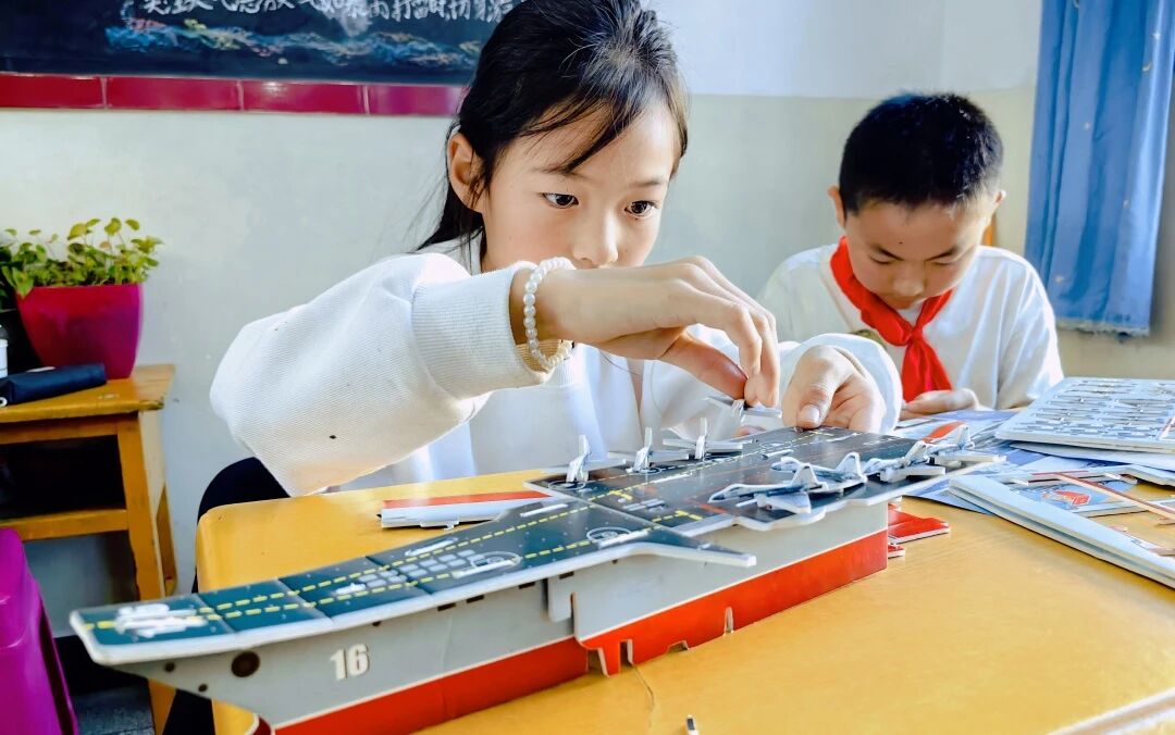 課堂特別設(shè)計趣味問答與互動實踐環(huán)節(jié)。問答環(huán)節(jié),學(xué)生們踴躍舉手搶答、主動提問;船模組裝實踐環(huán)節(jié),志愿者手把手指導(dǎo)學(xué)生對照圖紙拼接零件,當(dāng)一個個船模成型時,孩子們臉上滿是收獲的喜悅,不僅直觀掌握船舶構(gòu)造原理,更在動手過程中筑牢國防意識。此次志愿服務(wù)播下的“深藍種子”,或許將在未來生根發(fā)芽一一有人可能成為海軍戰(zhàn)士、有人或許成為工程師……我們志愿路,也將沿著瀾滄江脈絡(luò),延伸向更遠的遠方。
