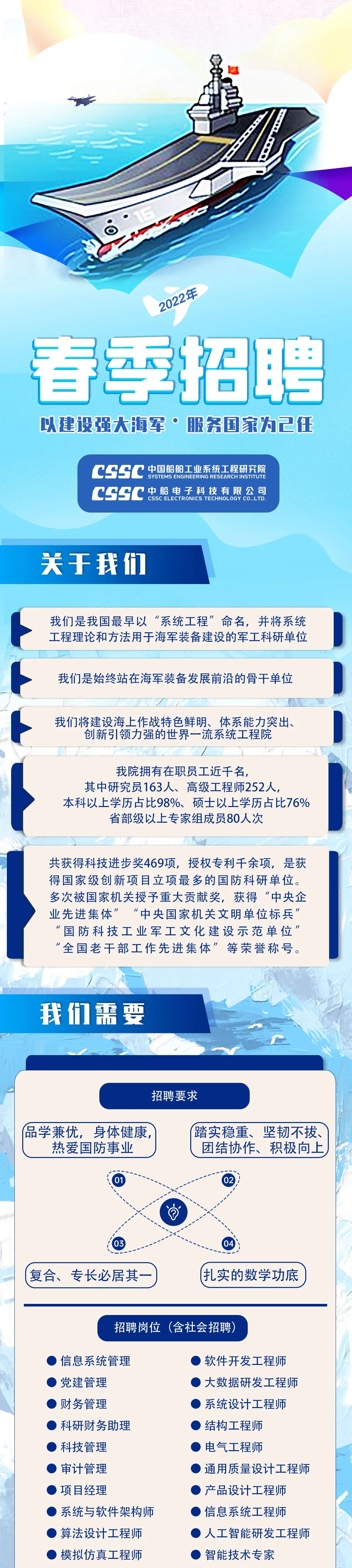 招聘|中國(guó)船舶系統(tǒng)工程研究院、中船電科等你加入